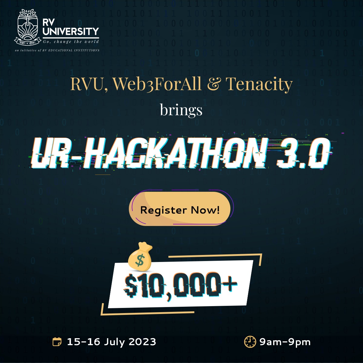 We are happy to announce our collaboration as university partner with Web3ForAll and Tenacity. Register now for the much-awaited Ur-Hackathon 3.0. Join us on July 15 and 16, 2023, from 9 a.m. t