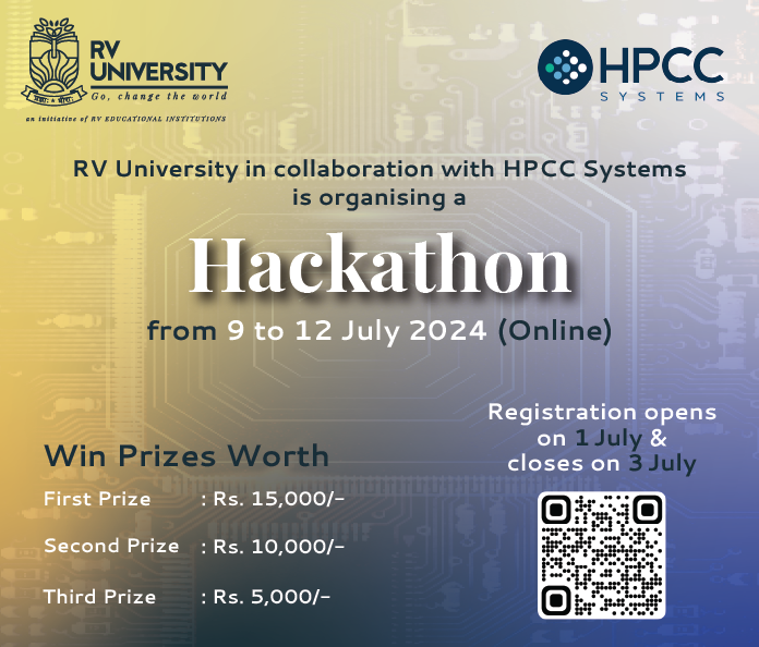 RV University in collaboration with HPCC Systems is organising a Hackathon from 9 to 12 July 2024 (Online).