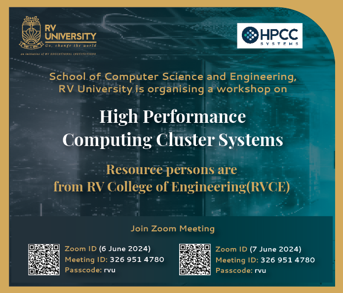 School of Computer Science and Engineering, RV University is organizing a workshop on High-Performance Computing Cluster Systems with Resource persons from RV College of Engineering (RVCE).