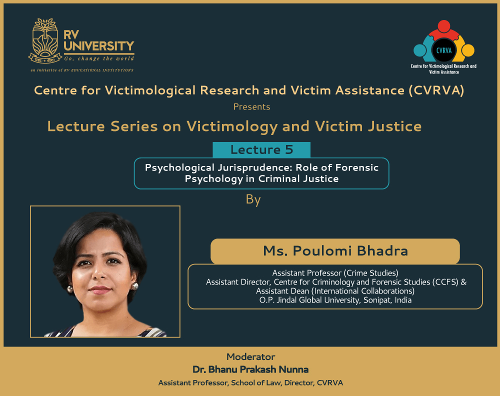 Centre for Victimological Research and Victim Assistance (CVRVA) presents Lecture Series on Victimology and Victim Justice Psychological Jurisprudence: Role of Forensic Psychology in Criminal Justice By Ms. Poulomi Bhadra As