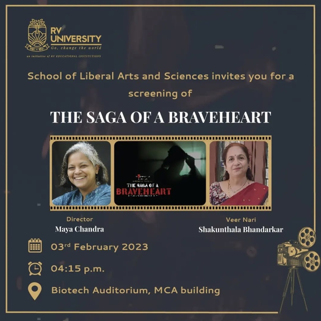 Grab the chance to interact with Maya Chandra, a veteran film production entrepreneur and Shakunthala Bhandarkar writer of “The Saga of a Braveheart,” on the screening of the documentary.