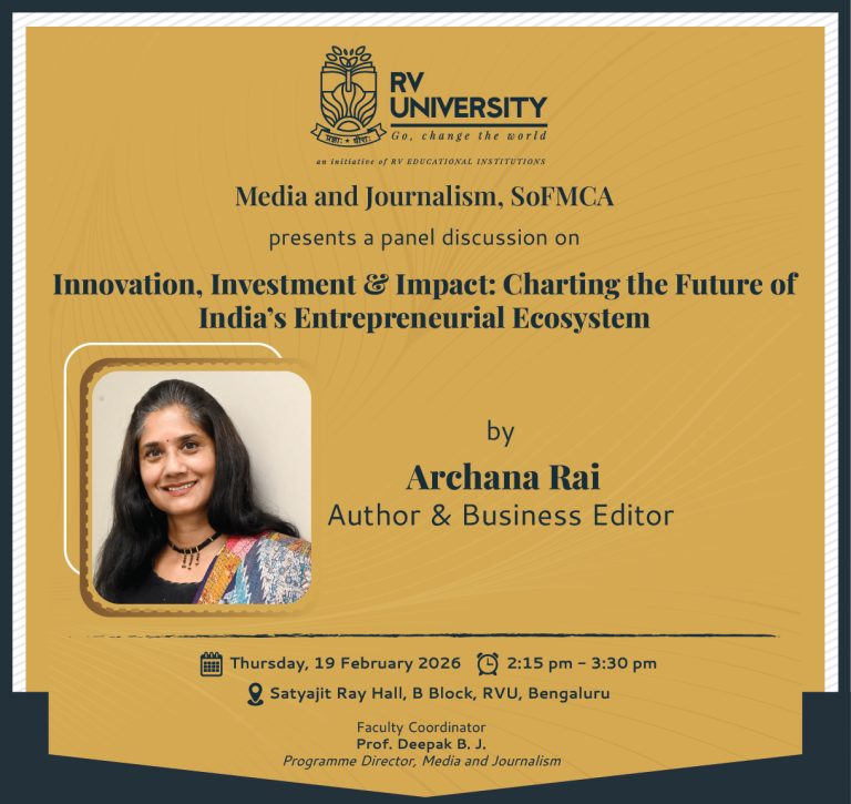 RV University is dedicated to excellence in teaching, research and community engagement, striving to be a global thought leader. With impactful national and international partnerships, we aim to create transformative learning opportunities. We empower students to cultivate empathetic, informed and solution driven learning to make a meaningful impact.